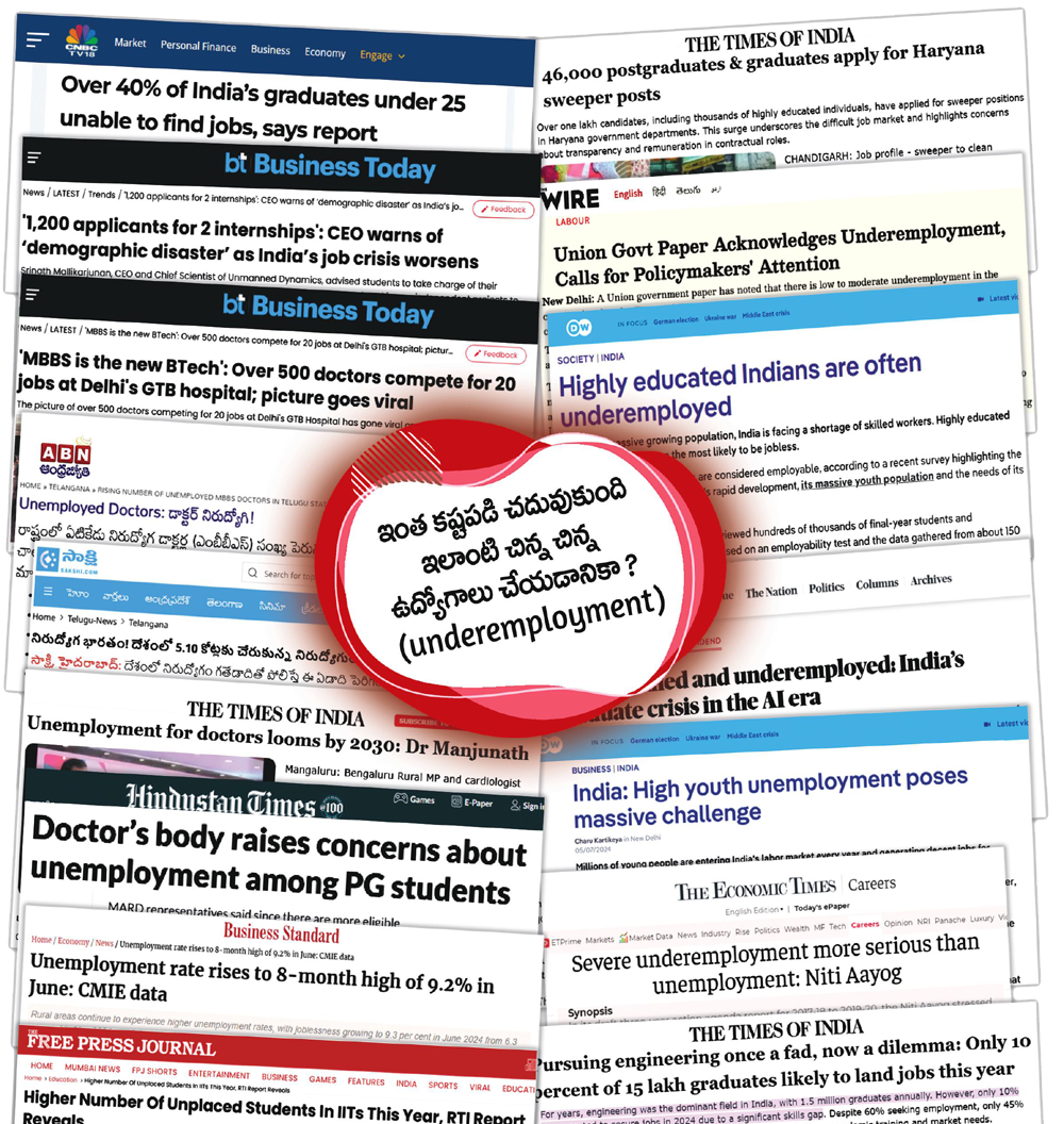 Those who attend regular engineering colleges know the extent of unemployment and underemployment. | No Unemployment and Underemployment |